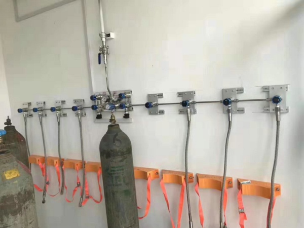 (2)集中供氣是將各種實驗分析儀器需要使用的各類氣體鋼瓶,全部放置在實驗室以外獨立的氣瓶間內(nèi),進行集中管理,各類氣體從氣瓶間以管道輸送形式,按照不同實驗儀器的用氣要求輸送到每個實驗室不同的實驗儀器上。整套系統(tǒng)包括氣源集合壓力控制部分(匯流排)、輸氣管線部分(EP級不銹鋼管)、二次調(diào)壓分流部分(功能柱)以及與儀器連接的終端部分(接頭、截止閥)。整套系統(tǒng)要求具有良好的氣密性、高潔凈度、耐用性和安全可靠性,能滿足實驗儀器對各類氣體不間斷連續(xù)使用的要求,并且在使用過程中根據(jù)實驗儀器工作條件對整體或局部氣體壓力、流量進行全量程調(diào)整以滿足不同的實驗條件的要求。
