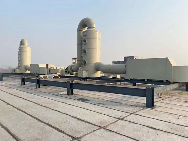 4、噴淋塔+活性炭吸附裝置,即主風管到樓頂后先連接噴淋塔后再經(jīng)過活性炭吸附裝置,凈化后的尾氣氣排出去。