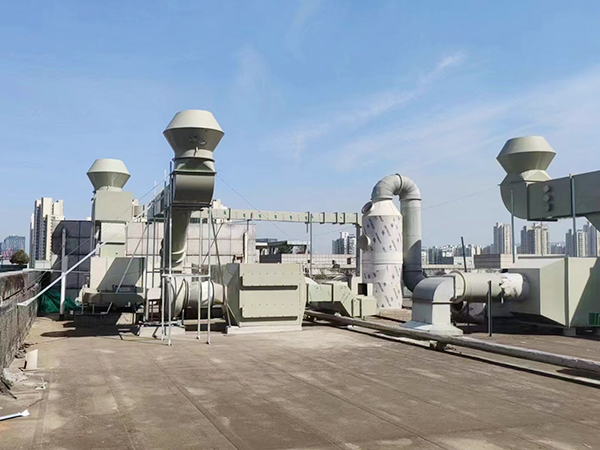4、噴淋塔+活性炭吸附裝置,即主風(fēng)管到樓頂后先連接噴淋塔后再經(jīng)過(guò)活性炭吸附裝置,凈化后的尾氣氣排出去。
