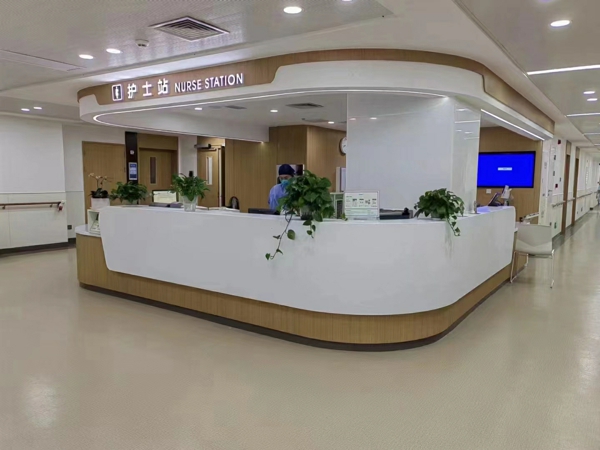護士站又稱護士導診臺或導診臺,既是護士工作的區域也是病患或家屬咨詢的樞紐中心,主要滿足醫患的功能需求,高層臺面設計既便于患者及家屬站立咨詢、書寫等,又可遮擋護士工作電腦、文件等物品;低層臺面設計主要滿足患者坐位或輪椅患者的咨詢和交談。一般高層臺面高度為1.1m,低層臺面高度為0.75-0.8m。因此在選購護士站時應兼容美觀性和功能性: