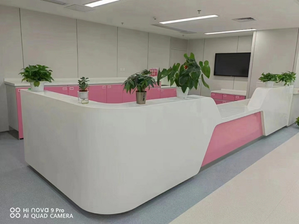 臺面:可采用不銹鋼,人造大理石,石英石,亞克力人造大理石等。人造石具有天然石粉、高性能樹脂和天然色素,通過真空澆注或模壓成型的礦物填充高分子復(fù)合材料(簡稱固體面材或固體板材,俗稱“人造石”)。表面無氣孔,具有極強的耐高溫、耐污、耐酸堿、耐腐蝕、耐磨性能,使細菌無處滋生。對燒痕、灼痕極易修復(fù),是一種非常衛(wèi)生易清潔的材料,可塑性強,可以無縫拼接。材料環(huán)保,配套設(shè)計更人性化。這些都是選購者們對護士站工作臺更加關(guān)注的地方。